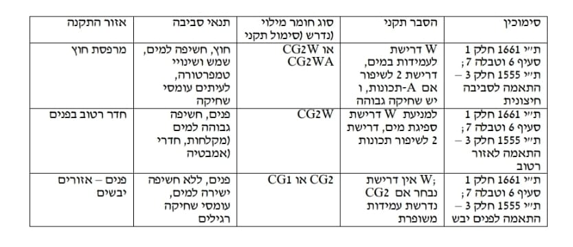 "החומר חייב להתאים לייעוד – פנים, חוץ, אזורים רטובים – בהתאם לדרישות העמידות המפורטות בתקן 1661 חלק 1."